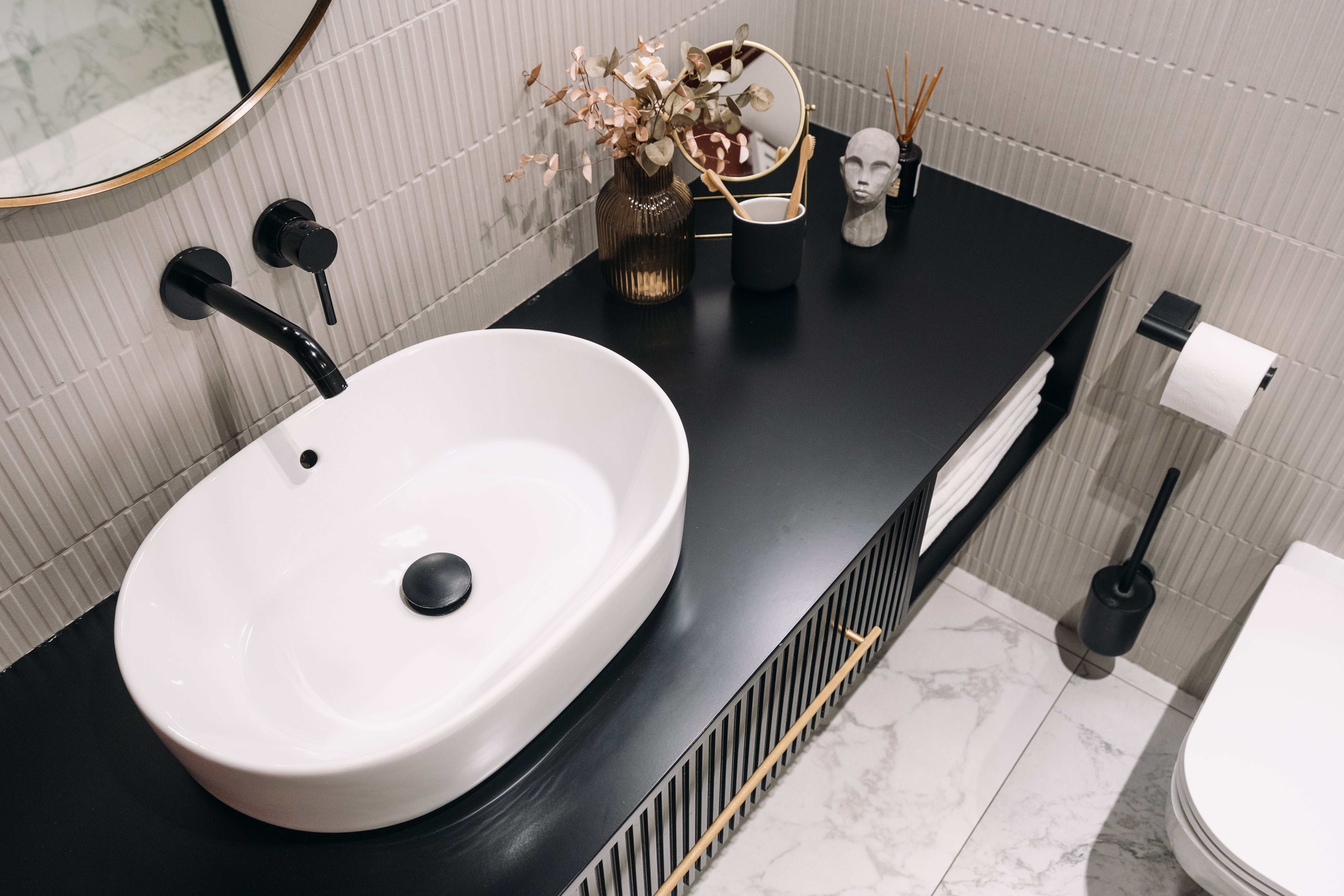 Früher ein loses Möbelstück mit unschöner Siphonaussparung, heute meist harmonisch mit dem Waschtisch verbunden. Moderne Unterschränke bieten nicht nur Stauraum, sondern auch zusätzliche Ablagefläche und Gestaltungsspielraum.